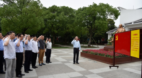 在陈云纪念馆大门前,,,,,,全体党员在公司党委书记、董事长池洪同志领誓下,,,,,,举起右拳,,,,,,铿锵有力,,,,,,向党旗庄重宣誓,,,,,,重温入党誓词,,,,,,表达了公司宽大党员不忘初心、切记使命,,,,,,奋力开立异时代新时势的坚定信心和顽强刻意,,,,,,每一位同志都接受了一次深刻的党性教育和灵魂洗礼。。。。。。。